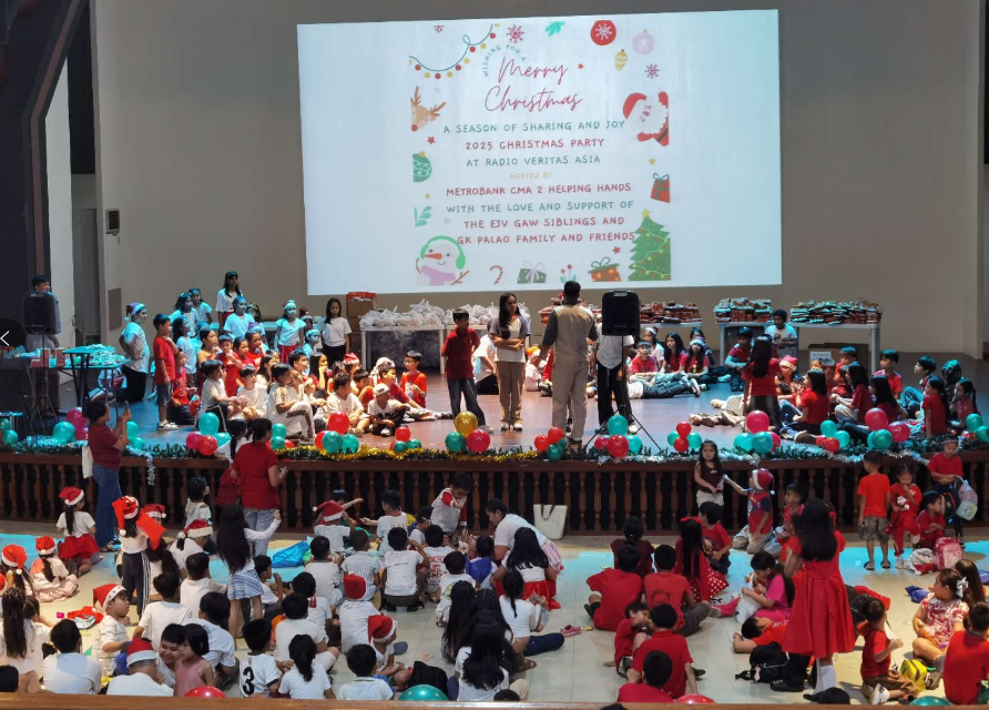 据本台报道,11月22日上午,亚洲真理电台中文部在菲律宾马尼拉奎松市电台总部的音乐大厅,为来自附近贫穷乡村的340多名孩童举办了圣诞节庆祝活动,颁发了恩人奉献的精美礼物。