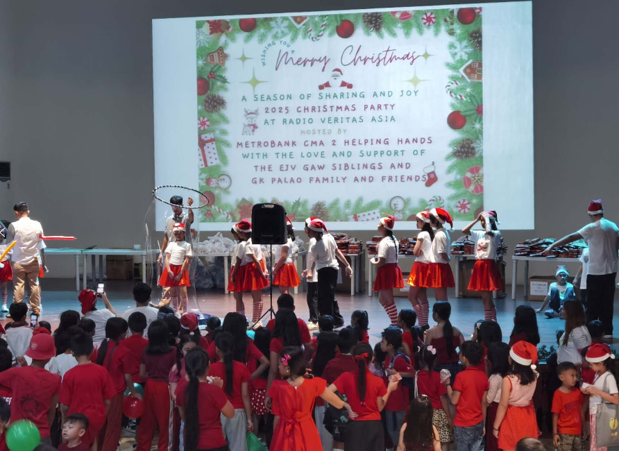 亚洲真理电台中文部在音乐厅为340多孩童举办2025年圣诞节庆祝文艺活动送祝福。