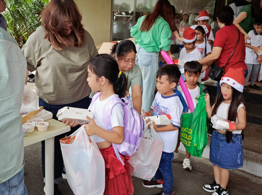 随后,30多名银行员工和其他恩人为孩子们分发了圣诞礼物和食物。此外,恩人们还特别为孩子们准备了冰激凌!每个孩子手里都拿着领到的圣诞礼物,去领取他们最爱吃的喜乐蜂午餐和冰淇淋。每一个小小的脸上都洋溢着喜悦、满足、幸福和开心的笑容。孩子们遇到叔叔阿姨都很有礼貌地用菲律宾语道谢。