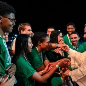 亲爱的青年们,面对世界的苦楚与盼望,让我们将目光专注在耶稣身上。当祂在十字架上受难时,将童贞圣母玛利亚托付给若望为母亲,也将若望托付给她为儿子。这份至高无上的爱的礼物,是给每一位门徒,也是给我们每一个人。我邀请你们接纳这份与圣母玛利亚——满怀挚爱与谅解的母亲——的神圣连结,并特别透过诵念玫瑰经来培养这份关系。如此,在生命的每一个情境中,我们都将体验到自己从不孤单,因为我们始终都是蒙天主所爱的儿女、被祂宽恕、并受到祂鼓励。让我们以喜乐的心为这一切作见证!