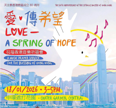 香港教区于2026年喜乐地庆祝成立80周年,首个大型公开活动是118日在中环遮打花园举行的“祝福香港音乐祈祷会”,借着圣道礼仪、舞蹈、音乐和歌咏,展现出基督徒与香港市民虽然共同面对挑战,但仍然能够携手前行。禧年暨教区成立80 周年庆典筹备小组主席夏志诚辅理主教邀请教友参与其中,一起为教会和社会成为“希望的传承者”。