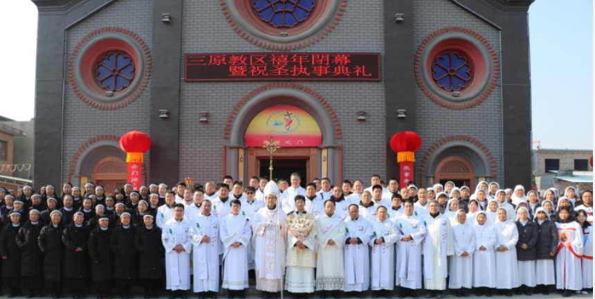 据《信德网》报道,2025年12月31日上午,杨永强主教携周村教区全体神父及修女在姜楼天主堂举行了2025年周村教区禧年闭幕弥撒。弥撒由杨永强主教主礼,池永跃神父与姜义元神父襄礼,近500多位教友参礼,大家齐聚一堂,共同参与这场意义非凡的盛典。
