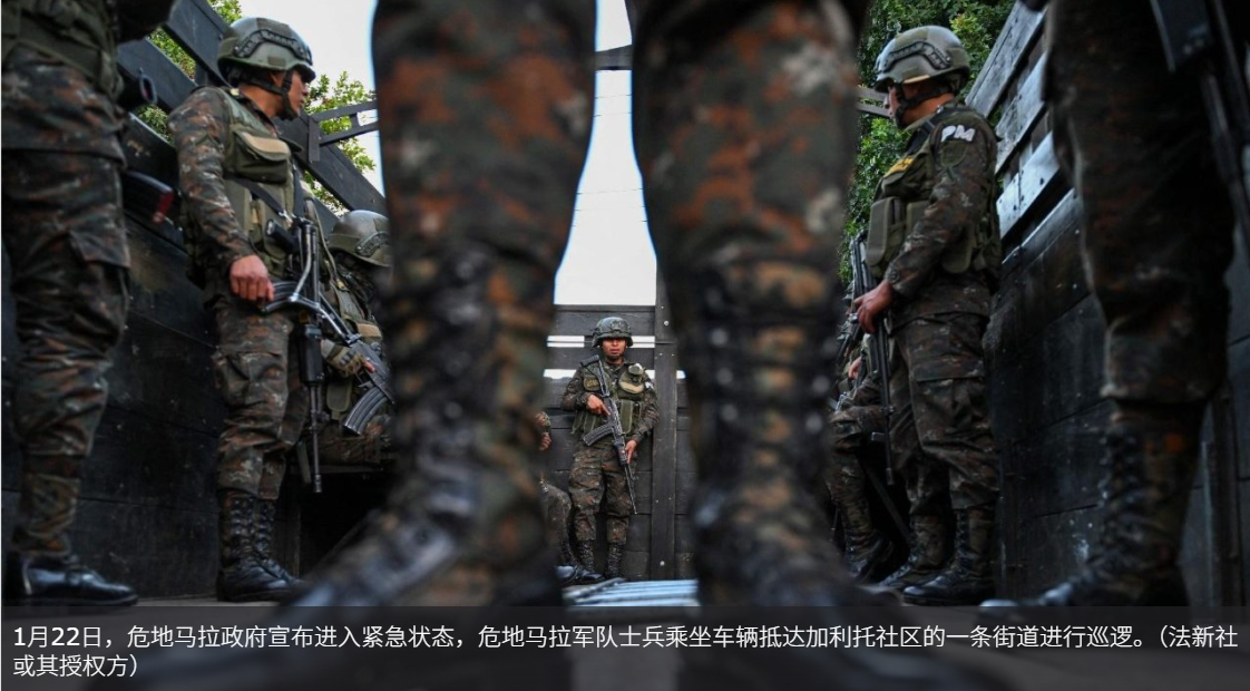 在中美洲国家危地马拉政府宣布全国进入为期 30 天的戒严状态几天后,危地马拉主教团主席努涅斯主教谈到了该国明显的“谨慎和恐惧”。他解释说:“民众普遍感到谨慎和恐惧。他们觉得政府的反应相当迅速。” 在中美洲国家危地马拉的首都危地马拉城,尽管数10名警察和全副武装的士兵正在挨家挨户巡逻,搜捕犯罪团伙成员,但人们仍然不敢出门。