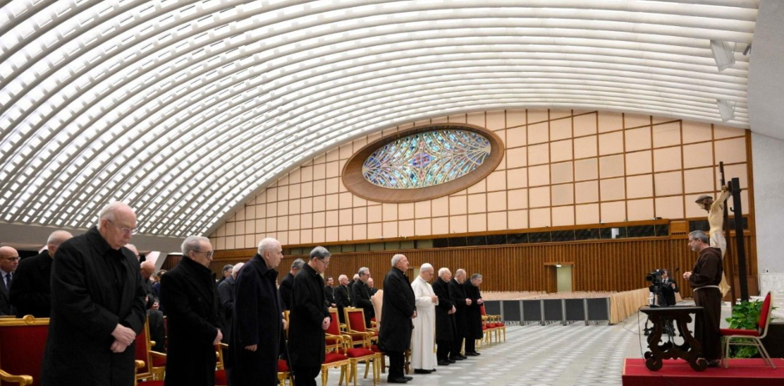 教宗府讲道神师帕索里尼神父(Fr. Roberto Pasolini)在教宗良十四世的见证下,发表了他的第一次四旬期默想,反思谦逊在我们持续归依过程中的重要性。