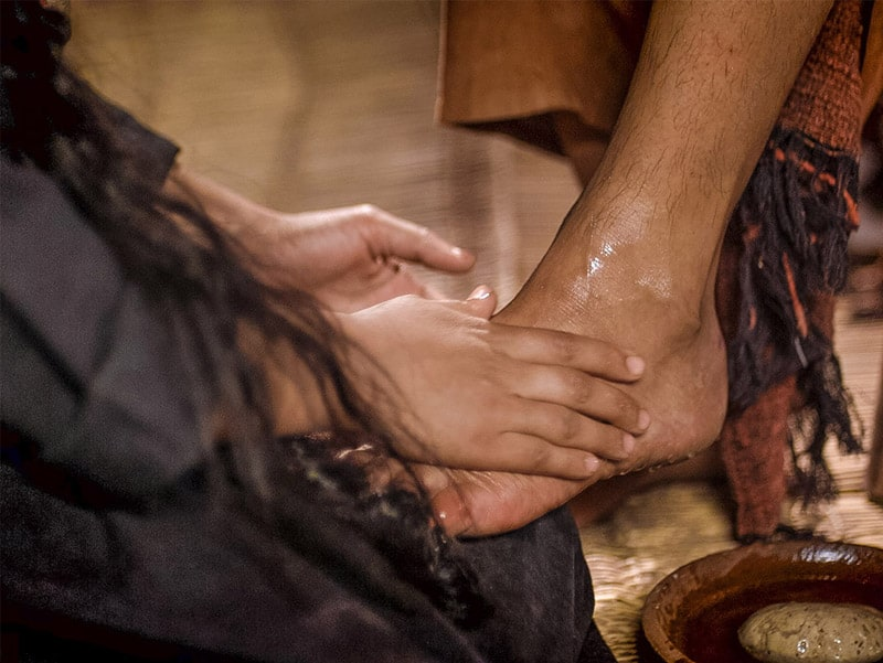 逾越节前六天,耶稣到了伯达尼,就是耶稣使拉匝禄从死者中复活的地方。有人在那里为耶稣摆设了晚宴,玛尔大在旁伺候,拉匝禄也是和耶稣一同用饭的一位。那时,玛利亚拿了一斤极珍贵纯正的甘松香液,来敷耶稣的脚,又用她的头发擦干,屋里顿时充满了香气。他的门徒之一,就是要出卖他的依斯加略人犹达斯说:“为什么不把这香液去卖三百块银钱,来周济穷人呢?”他说这话,并不是因为他关心穷人,只因为他原来是个贼,掌管钱囊,常盗用公款。耶稣就说:“由她吧!这香液原是她留下来为我安葬之日用的。你们常有穷人和你们在一起;至于我,你们却不常有。”有许多犹太人听说耶稣在那里,就来了,不但是为了耶稣,也是为看他从死者中所复活的拉匝禄。因此,司祭长决定连拉匝禄也要杀掉,因为有许多犹太人为了拉匝禄的缘故,离开他们,而信从了耶稣。