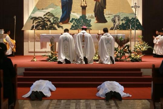 ♦10月19日,江苏省南京教区安海鹏和杨肖杰两位修士在太湖天主堂由南京教区陆新平主教手中领受执事圣秩,教区20多位神父与祭,近1000名教友、修女共同见证了这一庄严神圣的时刻。(信德网)