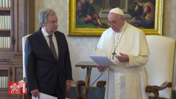 ♦教宗12月20日上午在梵蒂冈接见了联合国秘书长古特雷斯(Antonio Guterres),二人在会晤结束时发表了视频讯息。教宗在视频讯息中,首先感谢许多为建设一个更有人性和更公正的社会作出贡献的人,指出“我们不能单靠自己获得救援”。同时教宗呼吁关注贫困弱小,伸张正义,为世界和平作出贡献,反对利用宗教煽动仇恨和暴力的行径。古特雷斯秘书长在视频讯息中对教宗的呼吁作出回应,他表示“在这动荡和艰难时期,我们必须携手促进和平与和谐”。古特雷斯感谢教宗方济各,称教宗为“人类和希望的使者”,以一种“明确的道德声音”论述有关减少人的痛苦和促进人性尊严的问题。他说,教宗的讯息与《联合国宪章》的基本价值一致,并重新肯定了人的价值。(梵蒂冈新闻网)