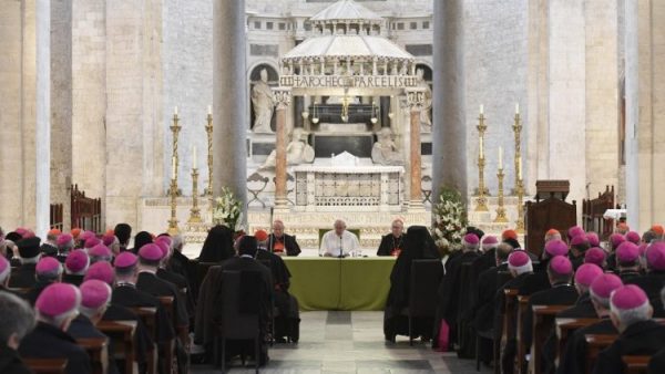教宗2月23日出席了在巴里为地中海沿岸多个国家的主教们举行的省思与灵修聚会的闭幕式。当天上午,教宗前往圣尼各老大殿地下墓穴瞻仰圣尼各老的圣髑,并问候了负责管理该大殿的道明会士团体。教宗走出大殿后,问候了聚集在大殿前的信友。特别感谢他们以祈祷陪伴主教们的这次聚会。他说,“祈祷是股力量,是一个基督徒团体的力量。牧者们祈祷,但是他们必须在这省思的日子里工作。他们感觉到你们的祈祷在陪伴著他们。我为你们所做的这项工作、你们为教会所作的祈祷表示感谢。你们不要忘记,要为教会、为牧者祈祷。在艰困时刻,更要勤奋地祈祷,因为总是需要上主来解决问题”。(梵蒂冈新闻网)