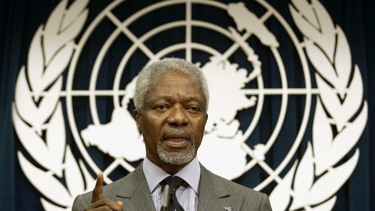 8月18日上午,诺贝尔和平奖得主、前任联合国秘书长科菲·阿塔·安南在瑞士伯恩一家医院逝世,享年80岁。他因致力于遏制和规范成员国使用武力的工作而被人们铭记。去年11月,他在梵蒂冈圣玛尔大之家与教宗方济各就难民与核武器议题举行会谈。