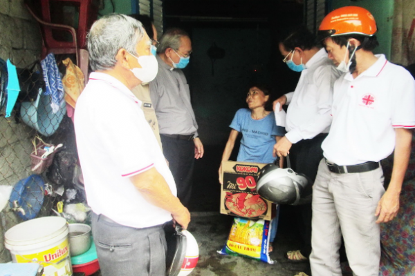 自4月16日起,顺化总教区总主教阮智灵蒙席和明爱的工人通过摩托车将大米和方便面运送给顺化市有需要的人。