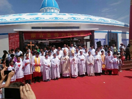 塞外草原内蒙古包头市萨拉齐蒙古圣母大殿于8月22日举行隆重的落成大典。这座新盖的教堂与众不同之处在于完全采纳了草原蒙古包式的建筑。