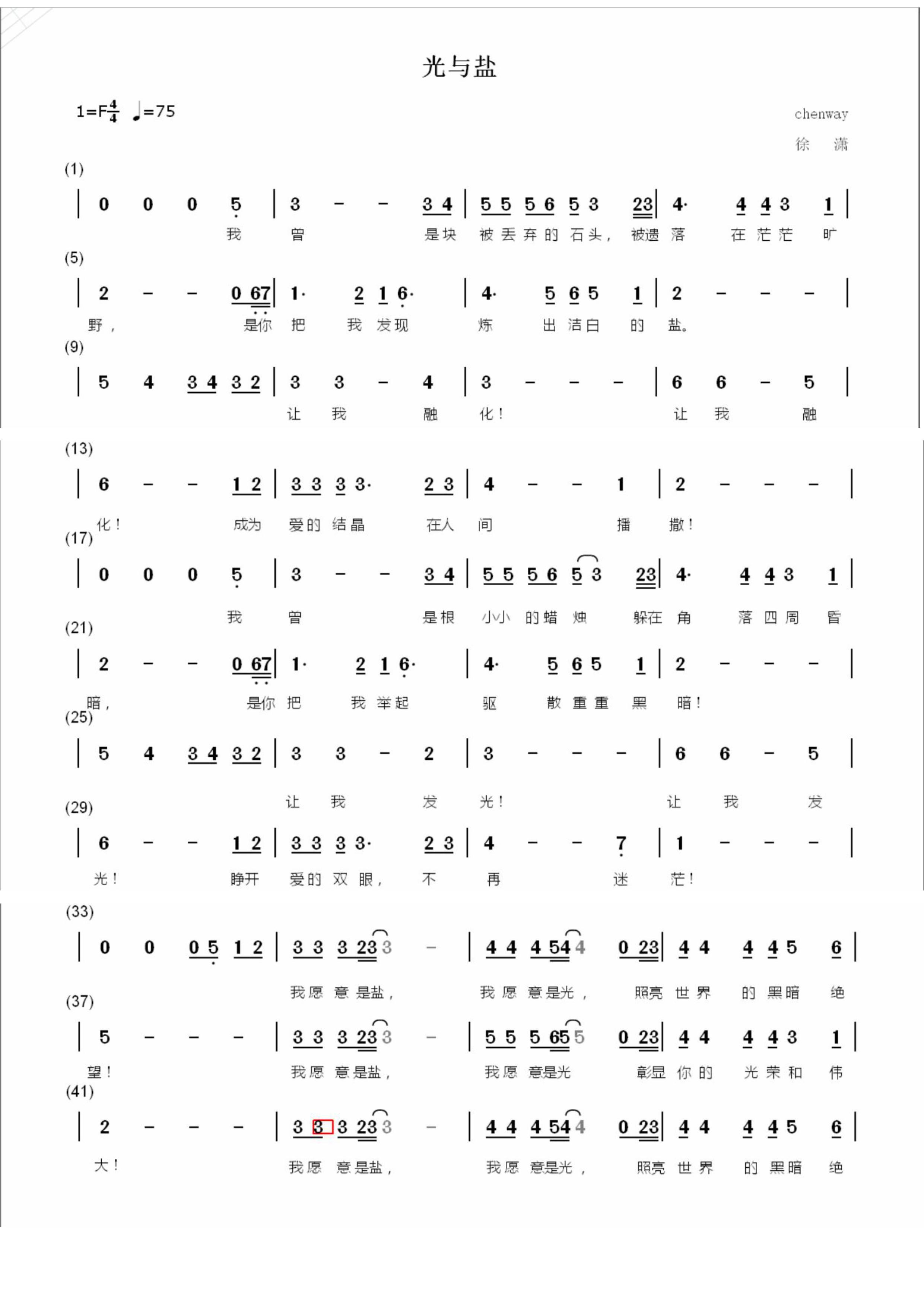 今天给大家介绍的歌曲是由福建闽东教区徐潇创作的歌曲:《光与盐》。
