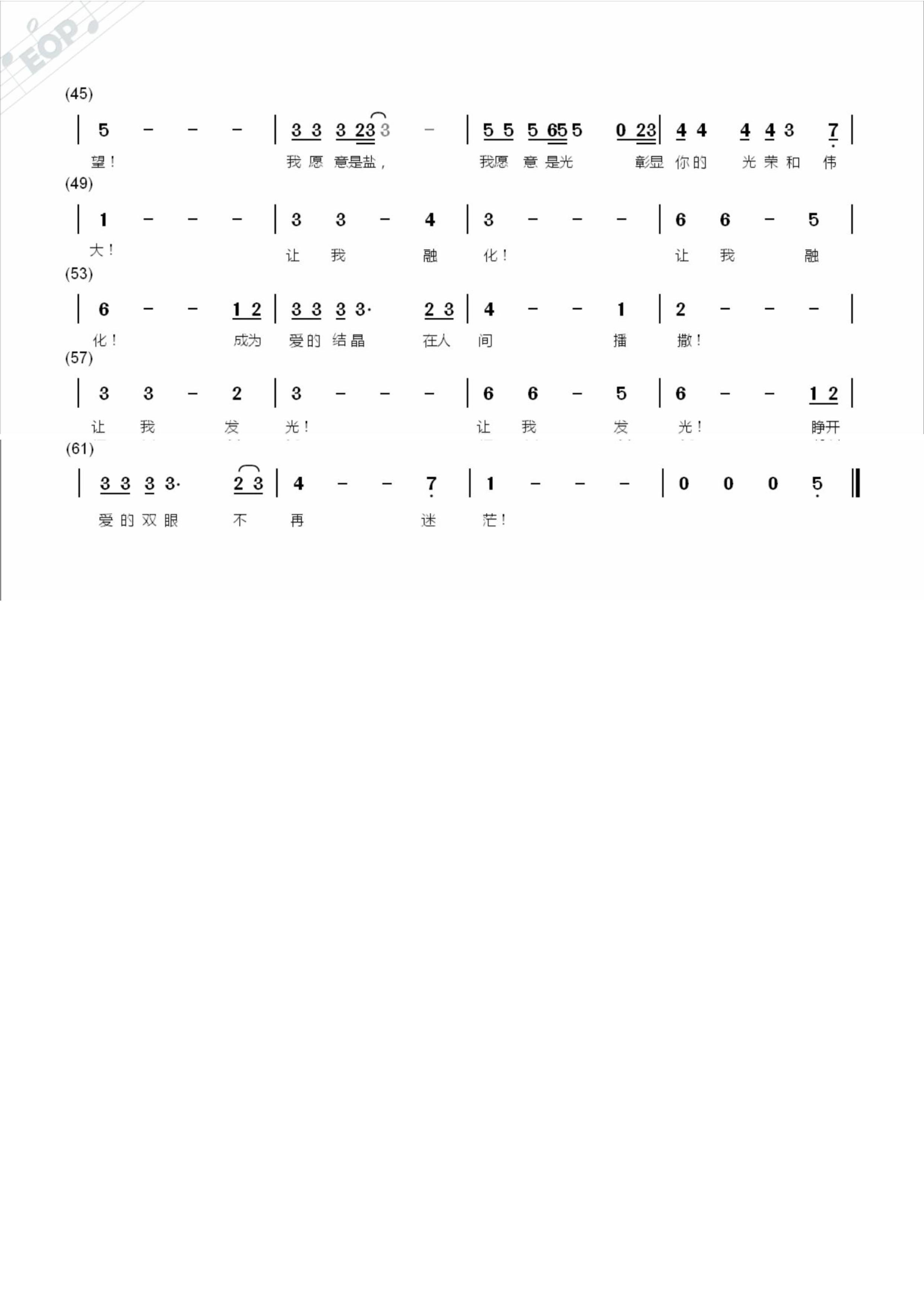 这首原创歌曲《光与盐》,主要是根据玛窦福音第五章13至16节的内容而写的。耶稣说让我们成为地上的盐、世界的光,让我们在人前发光发亮光荣天父!所以这首歌的主题围绕着光与盐而写作,我希望通过这首歌曲来表达青年人的信仰。希望青年教友能够勇敢地在人前承认自己的信仰,为教会注入新鲜的血液,用自己的活力带动并感染周围的人们,传播主的福音!同样,这首歌曲的词作者也是为外教友,也很感谢她能够根据圣经的启示为此曲写下歌词!本曲的编曲、旋律、和声等也都是我一人所做!愿此曲能为主所悦纳!