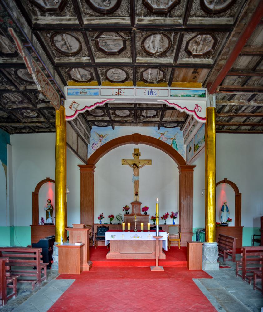 教堂就坐落在村后的山上,始建于清同治十四年(1888年),是当时西北五省最大的天主教堂之一。据资料显示,除了大教堂外,还有其他许多建筑,形成一个建筑群。整个教堂建筑群,由意大利神父李开熬设计,汉中的优秀工匠施工修建。整个建筑群设计独特,构思巧妙,用料考究,建造工艺高超,具有很高的艺术和观赏价值。主体建筑均为二层楼房,主要有钟楼、主教府、修道院、育婴堂、养老院、修院、学堂、碾房、仓库等,共计505间,各楼相互连接。