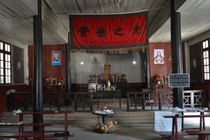 正因如此,接下来发生的事,却让江岸老师备受感动,内心里感受到天主的眷顾。他说:“就在他正发愁之际,一位骑摩托的中年男子正好停在了他的前面,于是他急忙上前打招呼:“老师(四川都这样尊称他人)你好,请问教堂在哪里?男子看了他一眼,也不多说,骑上摩托向他招呼,示意他跟着走。就这样,三拐两转,在斜街的拐弯处,一座民族风格浓郁的教堂耸立眼前。男子找人来打开堂门,朝我们笑笑,一问才知道,他正好是教友。正当要向他表示感谢时,他已经骑着摩托一溜烟消失在小巷中了。”这可能就是这里人的质朴善良体现。