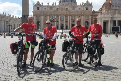 经过了17天的艰苦跋涉,由三名波兰天主教神父和一名平信徒组成的四人骑行朝圣团,于7月14日抵达梵蒂冈圣伯多禄广场。