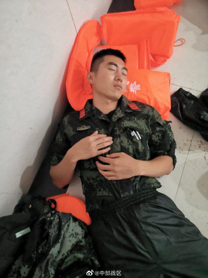 还有一幕是人民子弟兵带给我们的感动,据微博账号@中部战区 消息,7月21日凌晨,空降兵某旅接到中部战区命令后,闻令而动,出动650人,车辆38台,迅速赶赴现场。贾鲁河祥符区段的两处决口,情况危急,官兵们采用人工和机械相结合方式,筑起长1.5公里,高1.2米的沙袋墙,目前已完成大部分河堤加高任务。人民子弟兵连夜作战,双脚长时间浸泡在水里,足底都发皱了。不禁让人感叹:“你是谁?为了谁?”
