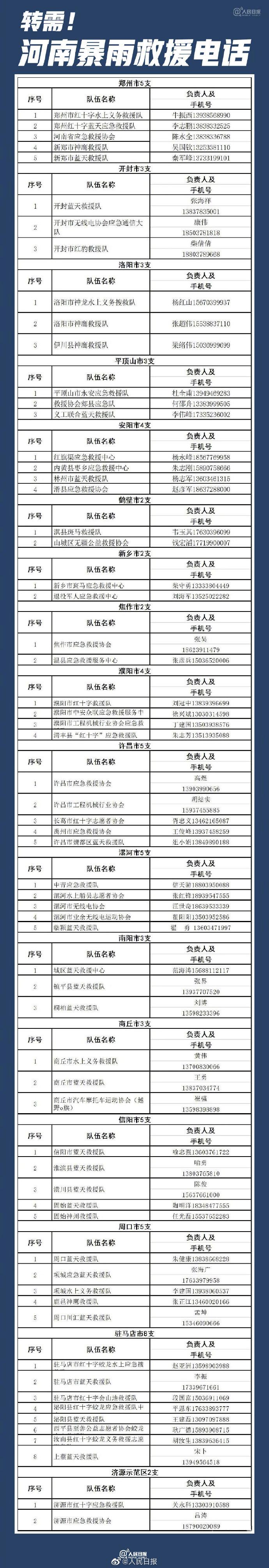 一方有难、八方支援。壹明也呼吁大家通过各种渠道为河南灾区捐款捐物。此外,如果您身边有人需要紧急救援,可以拨打以下电话(河南全省救援电话汇总图),您也可以将此电话图转给有需要的人。