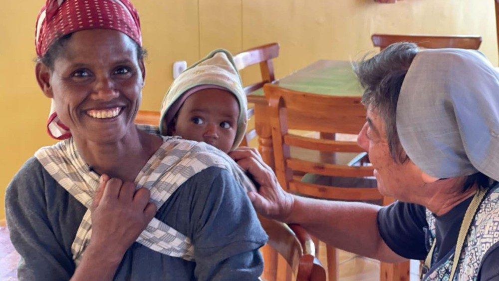 意大利籍母佑会修女阿桑德里(Rosaria Assandri)现年64岁,她已在非洲传教长达33年。在这些年间,她在肯尼亚开启了一家孤儿院,在南苏丹开设了一个新的传教站。现如今,她在离埃塞俄比亚首都亚的斯亚贝巴170公里的古布里服务。