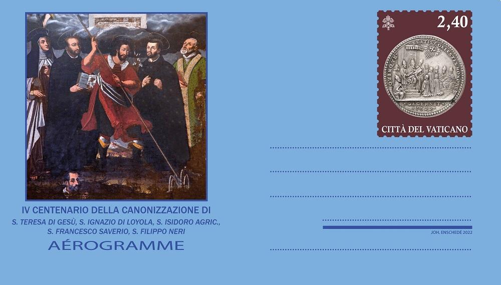 今天(3月12日)是教会这五位伟大圣人列封圣品400周年的纪念日。教宗方济各将在罗马耶稣会的母堂--耶稣堂举行弥撒,纪念400年前的这一盛事。而梵蒂冈集邮和钱币办公室正在赶制一幅绘于17世纪的五位圣徒的画作,作为其2022年的航空明信片。