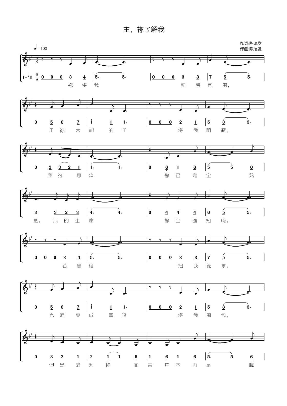 【华语圣歌创作集】54|《主,祢了解我》——第一届“真理杯”全球华语圣歌创作大赛参赛作品