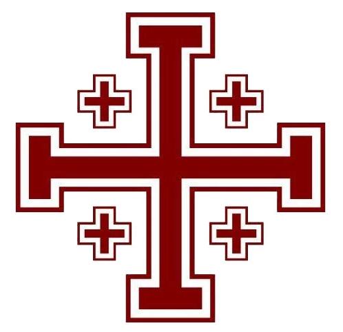 a.“耶路撒冷十字架”象征基督的五伤。大十字架象征耶稣肋旁的伤,而四个小十字架象征耶稣的两只手上和两只脚上的圣伤。