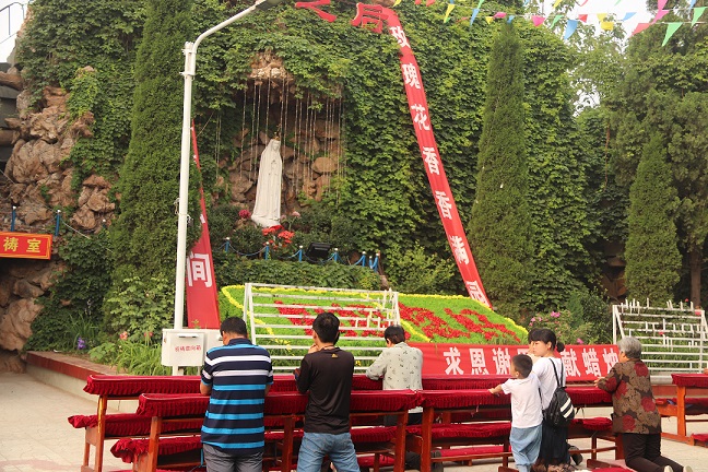 在5月13日黄昏时分举行的烛光游行礼当中,有来自于贾庄总堂区的10个弥撒点约3000位教友参与。教友们在本堂申建敏神父及其他9位神父的陪同下列队徒步从柏乡县城南面寨里村的圣堂出发至贾庄村的圣母山。一路上,教友们共分为11个方队手持蜡烛,口中诵念着玫瑰经。有许多教外朋友和行人们纷纷驻足观看。当游行至圣母山前,申建敏神父主持了祝福仪式并带领众教友们向圣母献上祈祷。