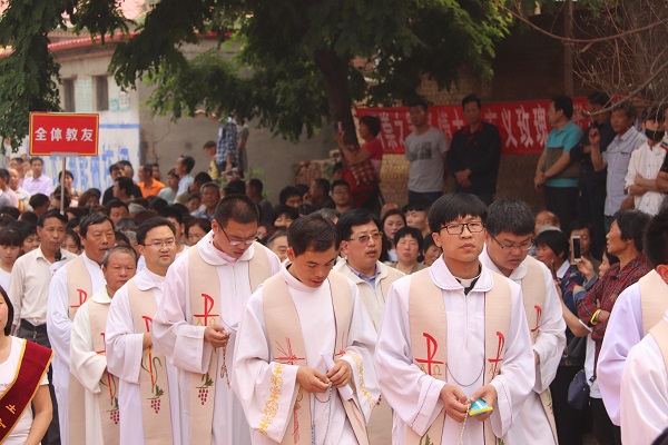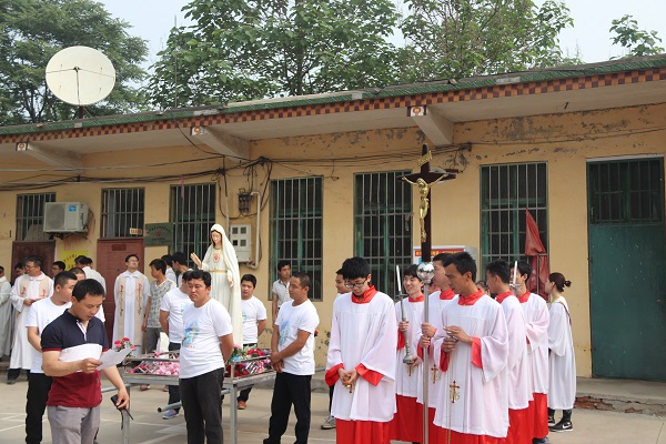 5月14日清晨,来自于周边各县的教友和贾庄堂区全体信友早早地便集聚在贾庄村小学里。