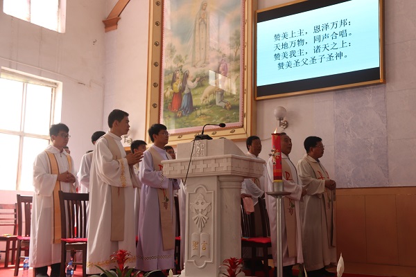 大礼弥撒由教区署礼张文西神父主礼,23位神父和1位六品共祭 ,约有2500位教友参礼。