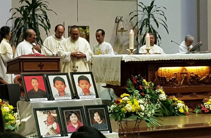 5月17日印度尼西亚基督徒悼念泗水 (东爪哇) 三间教堂遇到攻击的死者,并为伤者祈祷。在过去几个小时里, 为那些在伊斯兰国声称的自杀性攻击中丧生的人,以及在四天前由一个恐怖主义家庭,进行葬礼和悼念祈祷。8岁的男童和12岁哥哥,在对无玷圣母堂的袭击中罹难, 灵魂安息了。他们严重受伤的母亲躺在担架上参加了丧礼。另一个受害者的儿子说: "我们原谅那些负责任的人。"五旬节教会团体怀念达内尔的牺牲, 他试图阻止袭击者的面包车。 (亚洲新闻)