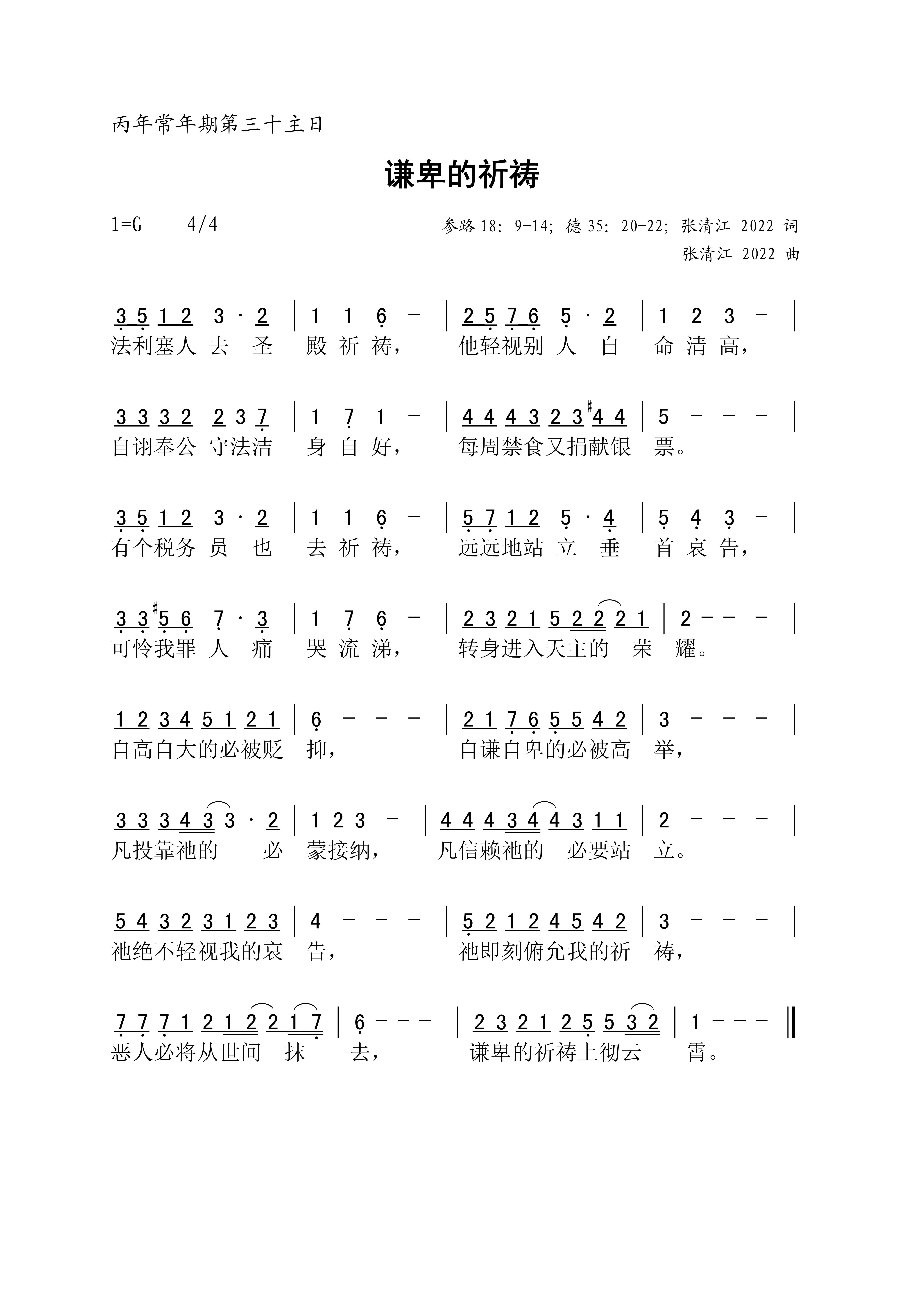 【主日赞歌】| 谦卑的祈祷——丙年常年期第三十主日