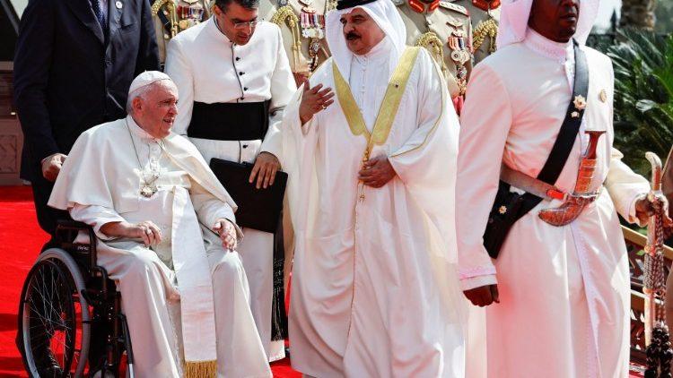 据梵蒂冈新闻网报道,昨日(11月4日),正在对巴林进行牧灵访问的教宗方济各出席“巴林对话论坛”闭幕式,并发表讲话。教宗表示,当下世代,人类彼此紧密相连,这在历史上是前所未有过的。然而,却有少数当权者在世界上的大多数人团结一致面对共同的困难时,陷入到为了党派利益而进行殊死的斗争之中。为此,各宗教领袖一定要做出承诺并树立好的榜样,有责任、鼓励和帮助人类大家庭,在支离破碎的时代里相互依存,共同扬帆远航。