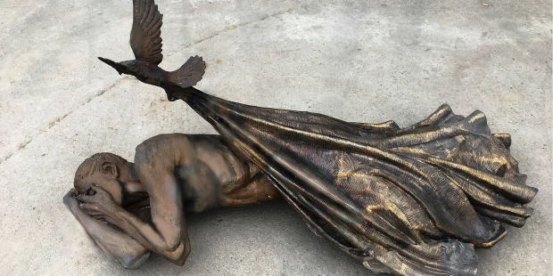 据梵蒂冈新闻网英语部门报道,这是一座真人大小的雕像,名为“庇护”(Sheltering),描绘了“一只飞翔的鸽子抓着毛毯,正将它轻轻盖在一位赤身裸体的流浪者身上”。雕像旨在邀请人们关注无家可归者,并采取具体的行动以帮助他们;同时,雕像也为推广文生大家庭的“13所房子”项目。这个项目计划在2023年年底,在文生大家庭服务的160余个国家为10000万名流浪者提供住房。