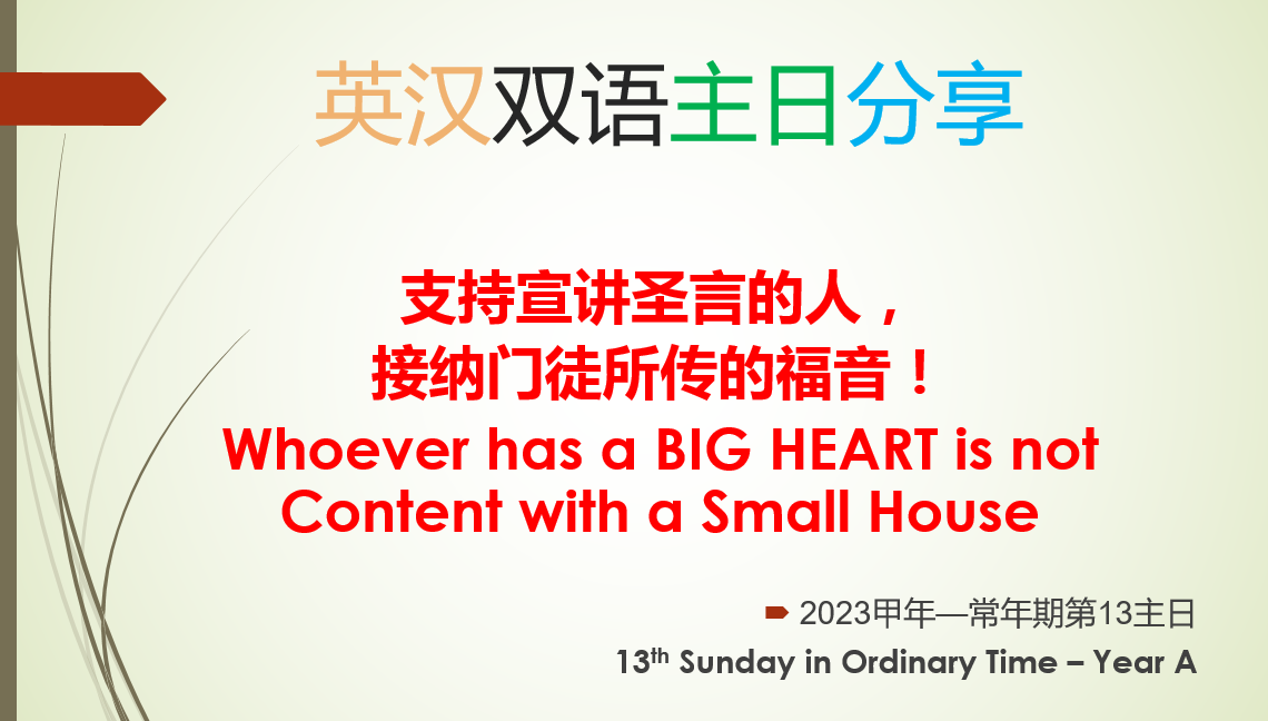 【英汉主日分享】| Whoever has a BIG HEART is not content with a Small House (13th Sunday in Ordinary Time)