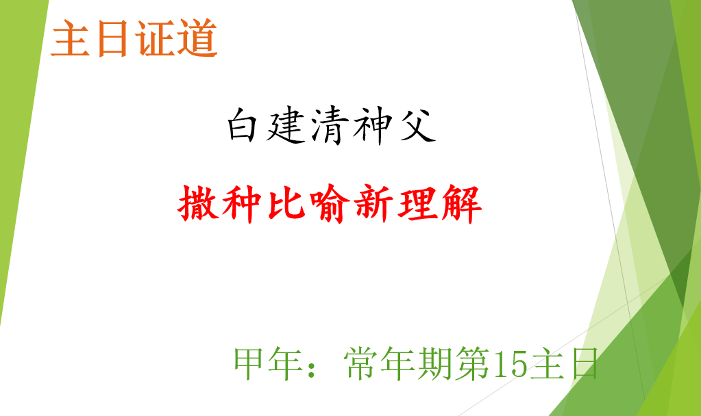 两千年前,主耶稣对门徒以外的人群讲了“撒种的比喻”。由于耶稣也将此比喻做了解释,所以寓意已经非常清楚了。今天我们再次聆听这段福音,好像也不需要多余的解释。然而,每一次聆听生活的天主圣言,都不是为了“明白道理”,而是为了“遇到主耶稣”,并跟随祂而生活。那么,今天,主耶稣通过这个比喻要给我们说什么呢?