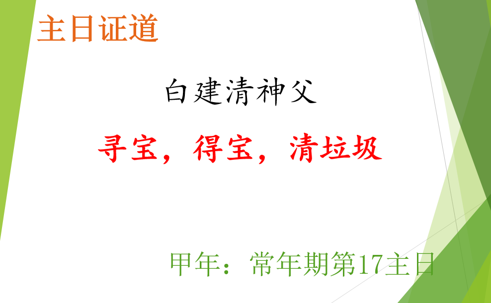 【主日证道】| 寻宝、得宝、清垃圾(甲-常年期第17主日)