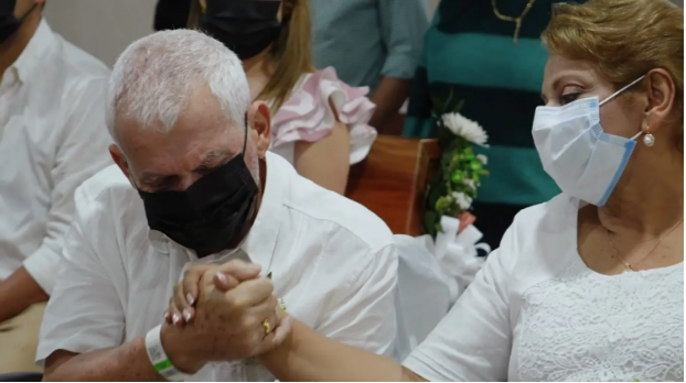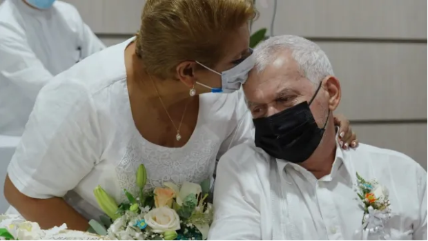 40年前,26岁的卡洛和22岁的苏撒纳结婚,并有了自己的孩子。现今,他们养育的3个孩子均已成年,还有了两个孙子。孩子们不仅为这两位老人带来了巨大的快乐,并与他们一起克服了许多生活中的考验。今年四月,卡洛10年前通过手术和化疗治愈的霍奇金淋巴瘤(Hodgkin’s lymphoma)再次复发,危及健康。后来,卡洛被医生告知自己必须再次接受治疗。自此,他便一直在该国东部布卡拉曼加的一家国际医院里接受治疗。也正是在此时期,卡洛向主管病房的莫利纳(Yadir Molina)表达了自己的愿望,希望能和妻子一起在教会里领受婚姻圣事。医疗中心的工作人员花费几天的时间组织了仪式,帮助这对儿老夫老妻完成心愿,并与他们的家人一起见证了这个特殊的时刻。