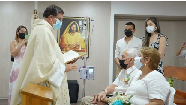 据真理网(Aleteia)报道,卡洛(Carlos Ariza)和苏撒纳(Susana Orejarena)是一对儿来自哥伦比亚的,已到花甲之年的夫妇。在今年早些时候,他们在亲属的陪同下,在医院的圣堂里领受了婚配圣事和祝福。