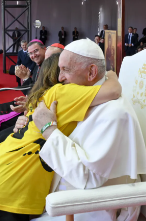 5、世青节活动中还有一个重要的部分,就是教宗方济各于8月4日在和解公园为三名年轻人听告解。这次活动中有一个温馨的画面:一名年轻女子在告解后获得圣父来自天父般的拥抱。