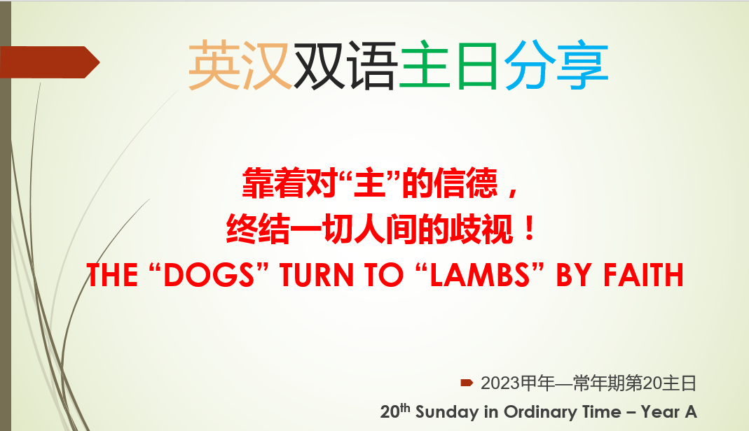 【英汉主日分享】| THE "DOGS" TURN INTO "LAMBS" BY FAITH(20th Sunday in Ordinary Time)