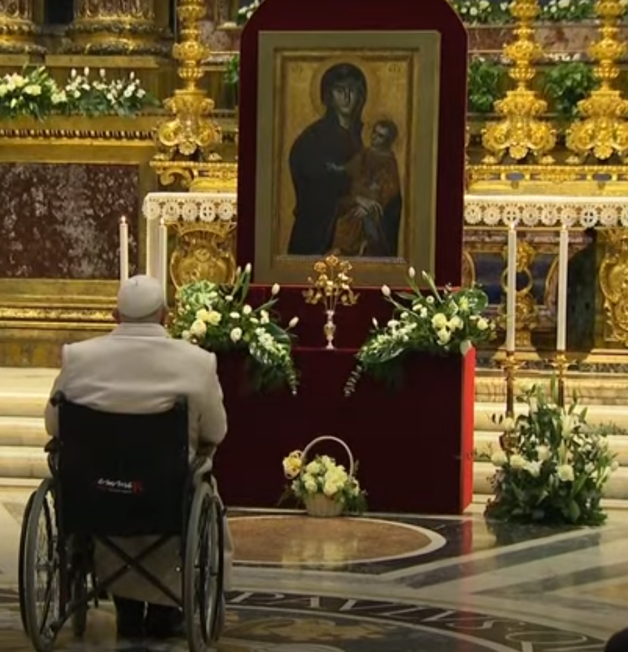 教宗在罗马人民救援之母像前献上金玫瑰,并为世界和平,尤其为乌克兰和圣地祈祷。