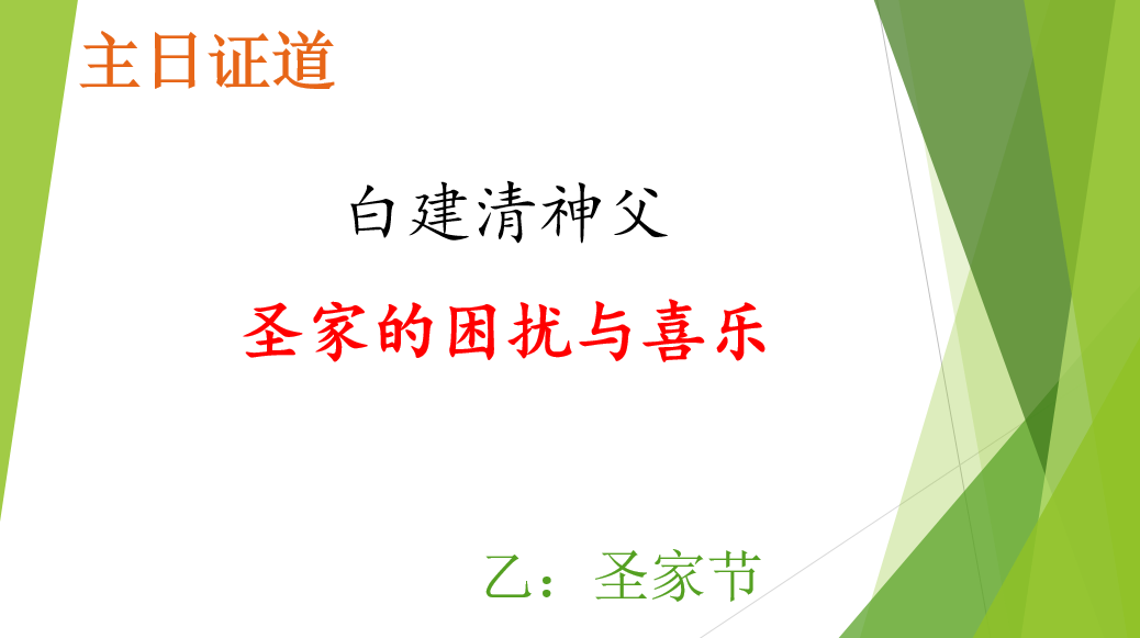愿我们学习圣家属于天主,生活聖善,彼此相爱,努力完成天主给予我们的使命。在完成天主的使命中我们就会经验到天主的祝福,平安和喜乐。