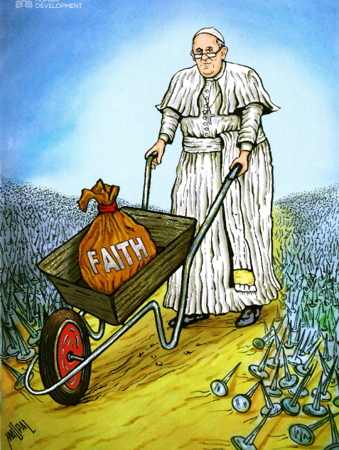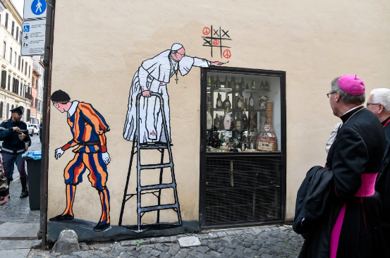 梵蒂冈邀请意大利街头艺术家莫帕尔用海报来将教宗方济各的一些讲道或是思想阐述出来,而莫帕尔也因创造性地绘制教宗的画像而闻名。