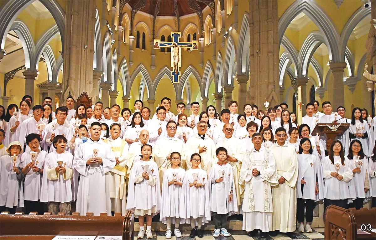 据香港公教报报道,今年香港复活节约有2300位成人、青少年及婴儿领洗加入教会大家庭,其中坚道圣母无原罪主教座堂的逾越节守夜礼由周枢机主礼,礼仪中向70位候洗者付洗及施放坚振,派遣他们广传福音。在场约1000名教友热烈欢迎“新血”,高唱“我是教友”时,无不跟着拍子挥动复活蜡烛,流露欢欣的笑容。