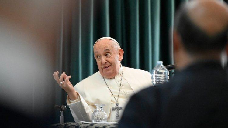 几位雷比比亚监狱的辅导司铎也在场,他们于今年圣周四教宗在雷比比亚女子监狱主持主的晚餐弥撒中已经见过他。这次谈话中,借着他们的临在谈到服刑人困窘的处境,如自杀危机和陪伴的迫切需要。
