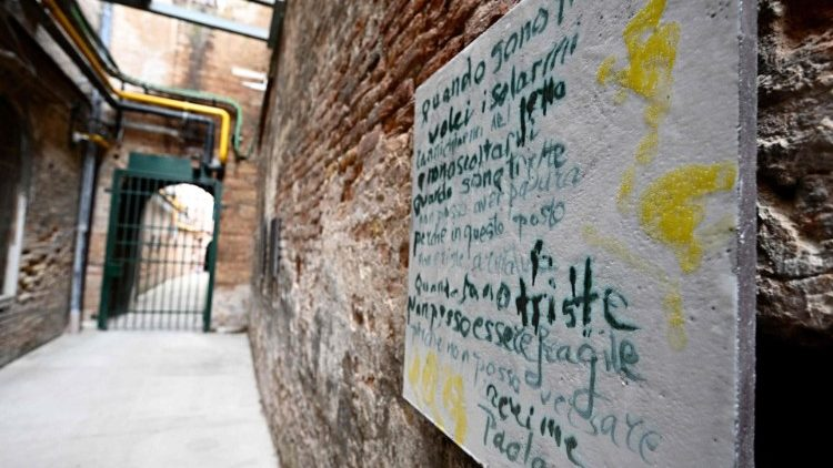 教宗此行要欣赏圣座展馆内9名艺术家的作品,并探望在此服刑的80名“客人”。本届威尼斯艺术双年展的主题为“处处是外人”,点出了人人都会有的普遍感受。这一感受在监狱里显得格外明显:服刑人进入监狱时觉得自己是个外人,而监狱外的人也把他们当作外人看待。比安科托神父解释说:“在这里,服刑人觉得自己是个过客。她们在监狱的生活有如回家前暂时寄人篱下。”