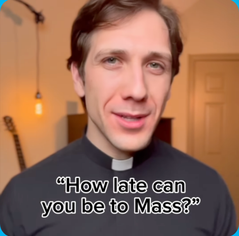“不可避免的紧急情况和延误当然会有。但总体来说,每当弥撒时,准时,甚至早一点儿到圣堂,这才是合理的。教会并没有关于弥撒中迟到的官方规定。我很高兴,因为这本身就是一个错误的问题。弥撒是一份礼物,它使天堂降临到人间。为此,天主希望你能经历这一切。”