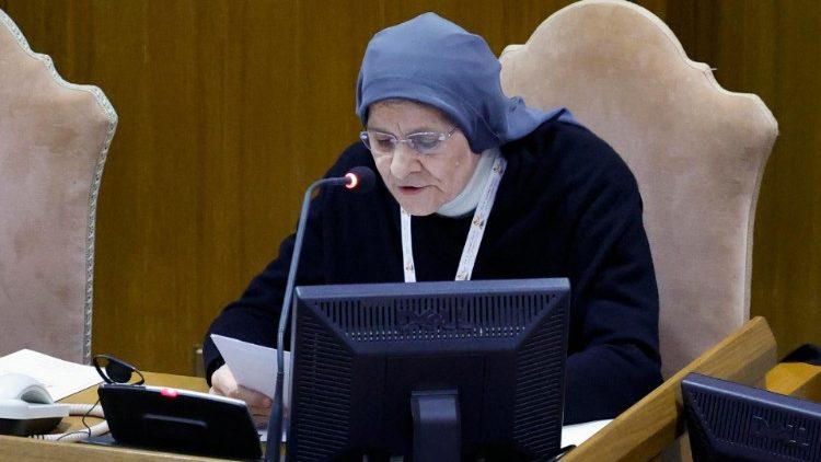 本笃会安杰利尼修女带领世界主教会议与会者进行默想,主题为“同道偕行的教会从事传教使命之地”。修女指出,为了在人际关系中寻找传扬福音的空间,切莫跟着媒体随波逐流、空洞地遵守规范、盲从外表的文化。这一切无法解除青年的饥渴,只会使他们筋疲力尽。