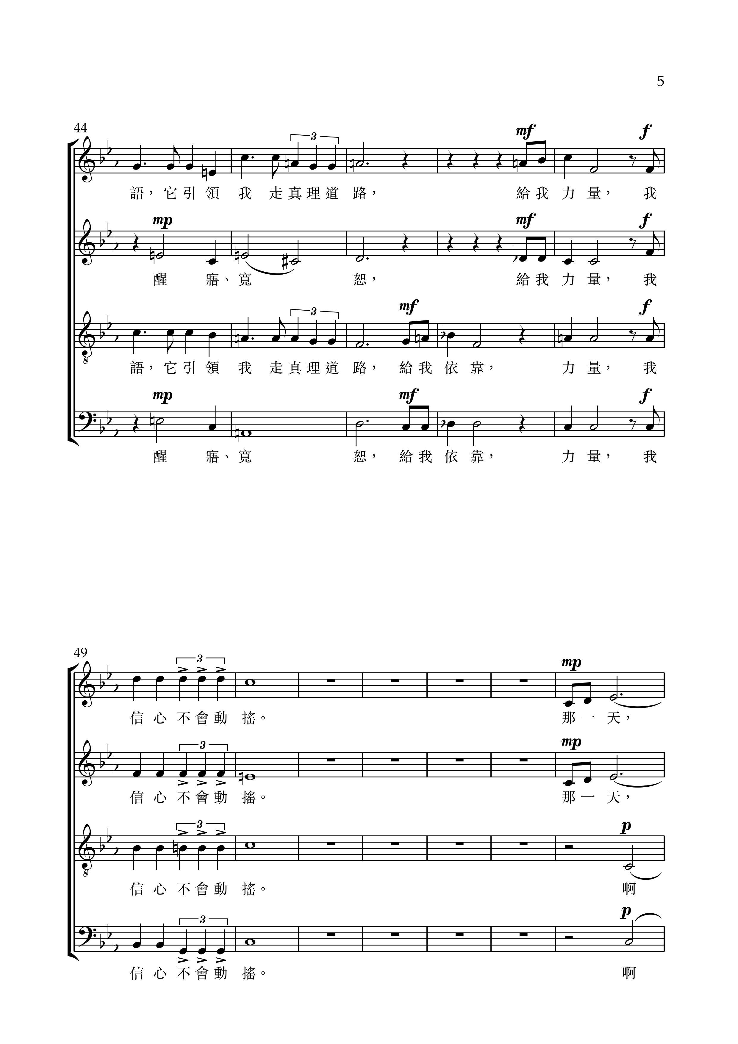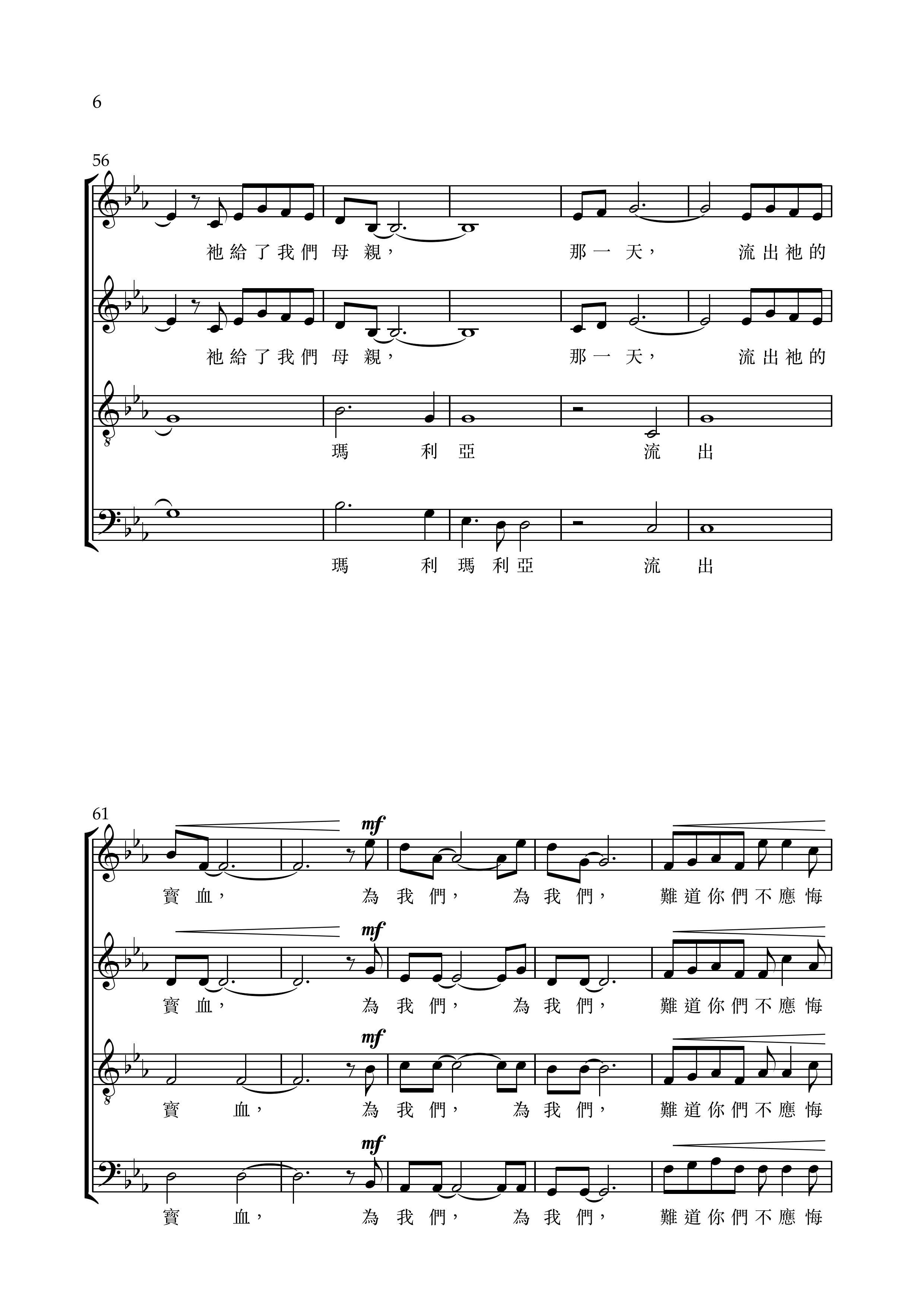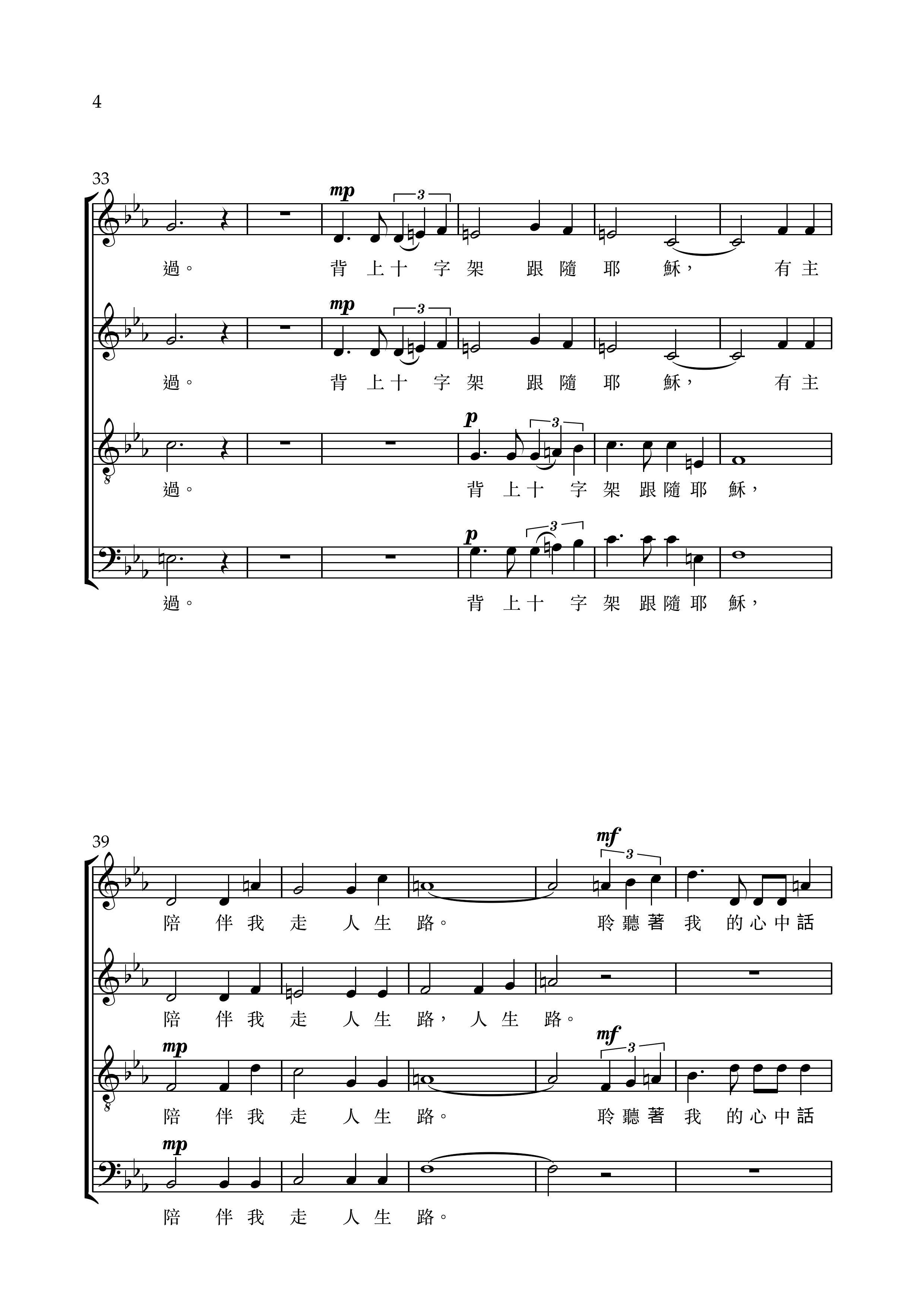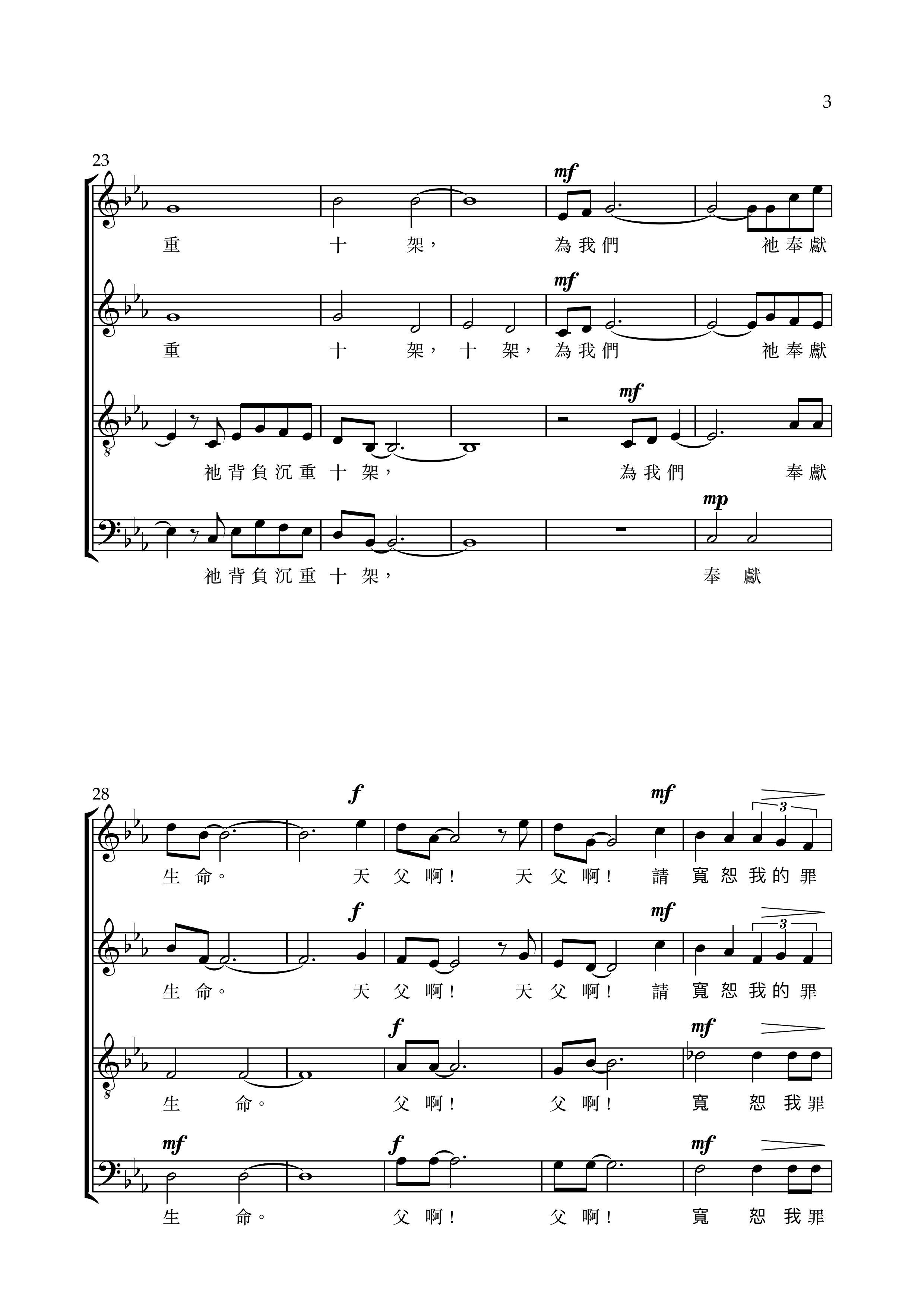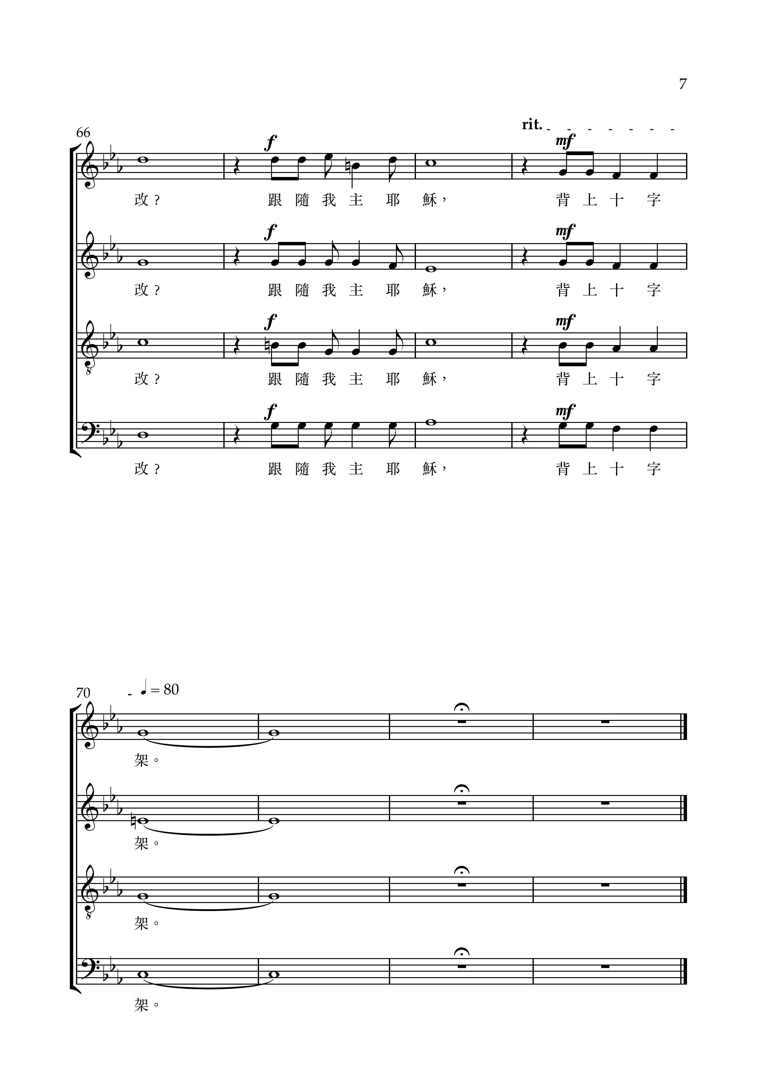 前几年,写了《耶稣!耶稣!》是关于「悔改」。这次创作主题还是“悔改,背上十字架,跟随祂”。这次由祈祷、聆听开始,默想祂对我们的教导;祂为我们背着十字架并付出了生命;祂给了我们母亲(玛利亚),也为我们流出宝血;这一切一切,难道我们还不悔改吗?「跟随祂」也意味着行动,执行祂的教导,亦是作者想藉由这曲子想表达的深意。这是一首管弦乐四部合唱作品,作曲家希望透过这样的和声张力,能在短短几分钟内,把歌词的意境表达出来,打进聆听者的心坎里。