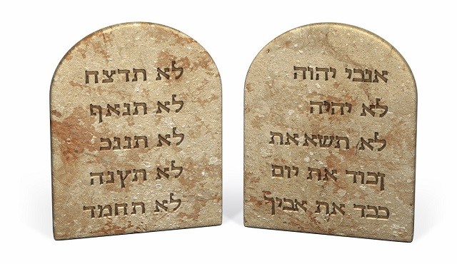 Ten Commandments written on stone tablets in Hebrew[/caption]